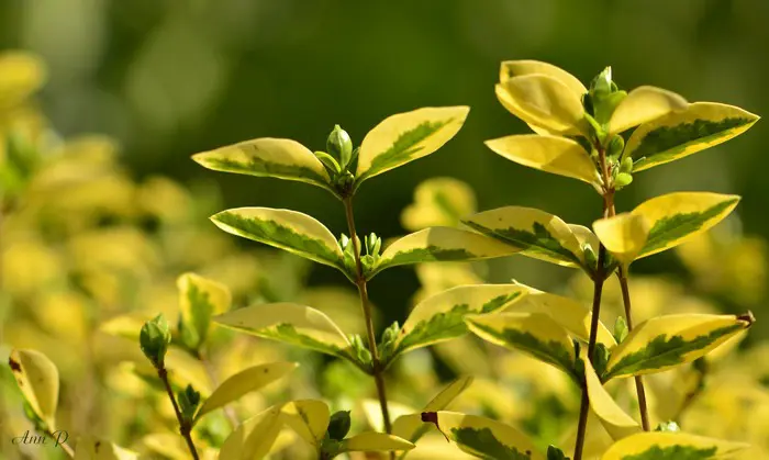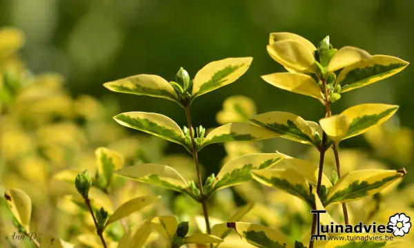 Ligustrum ovalifolium 'Aureum' fleurit avec des fleurs blanches parfumées suivies de baies noires, sauf si elles sont taillées en haie, elles ne fleurissent pas.