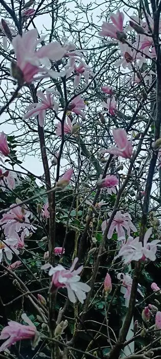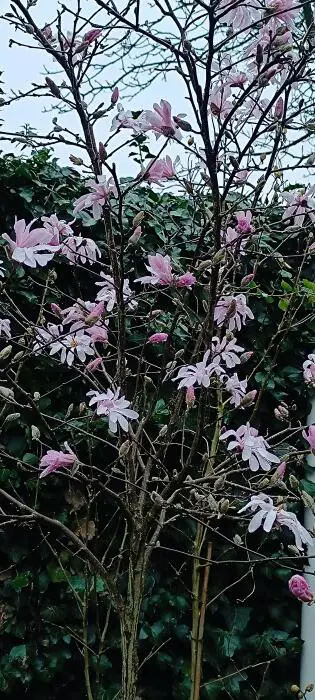 Magnolia stellata 'Rosea' est un arbuste compact, largement rond, avec des feuilles vert lancéolées et une riche floraison de bourgeons soyeux qui s’ouvrent en fleurs en forme d’étoile, légèrement parfumées et rose pâle.