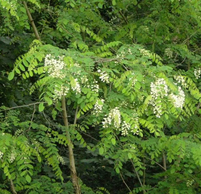 Cette fausse acacia ou acacia blanche est un exotique envahissant et n’est pas une acacia, c’est un arbre à croissance rapide qui gagne facilement 1 mètre par an.