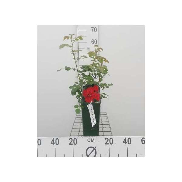 Rosa « Black Forest Rose » fleurit avec des grappes de fleurs rouges.