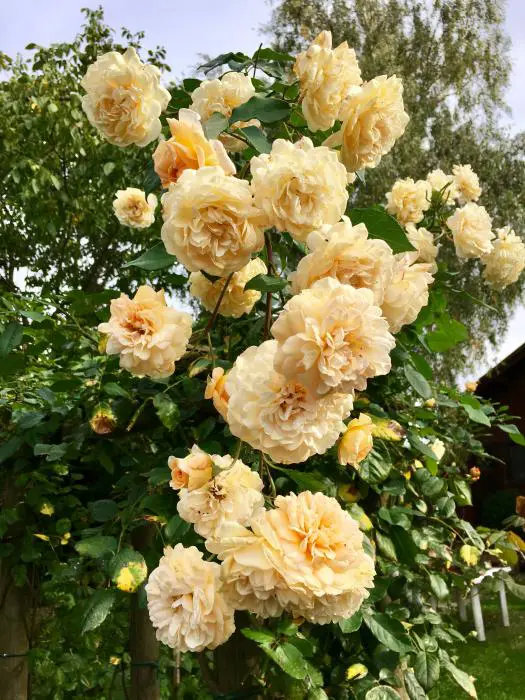 C’est un rose arbustif qui peut aussi être utilisé comme grimpeur en bas étage.