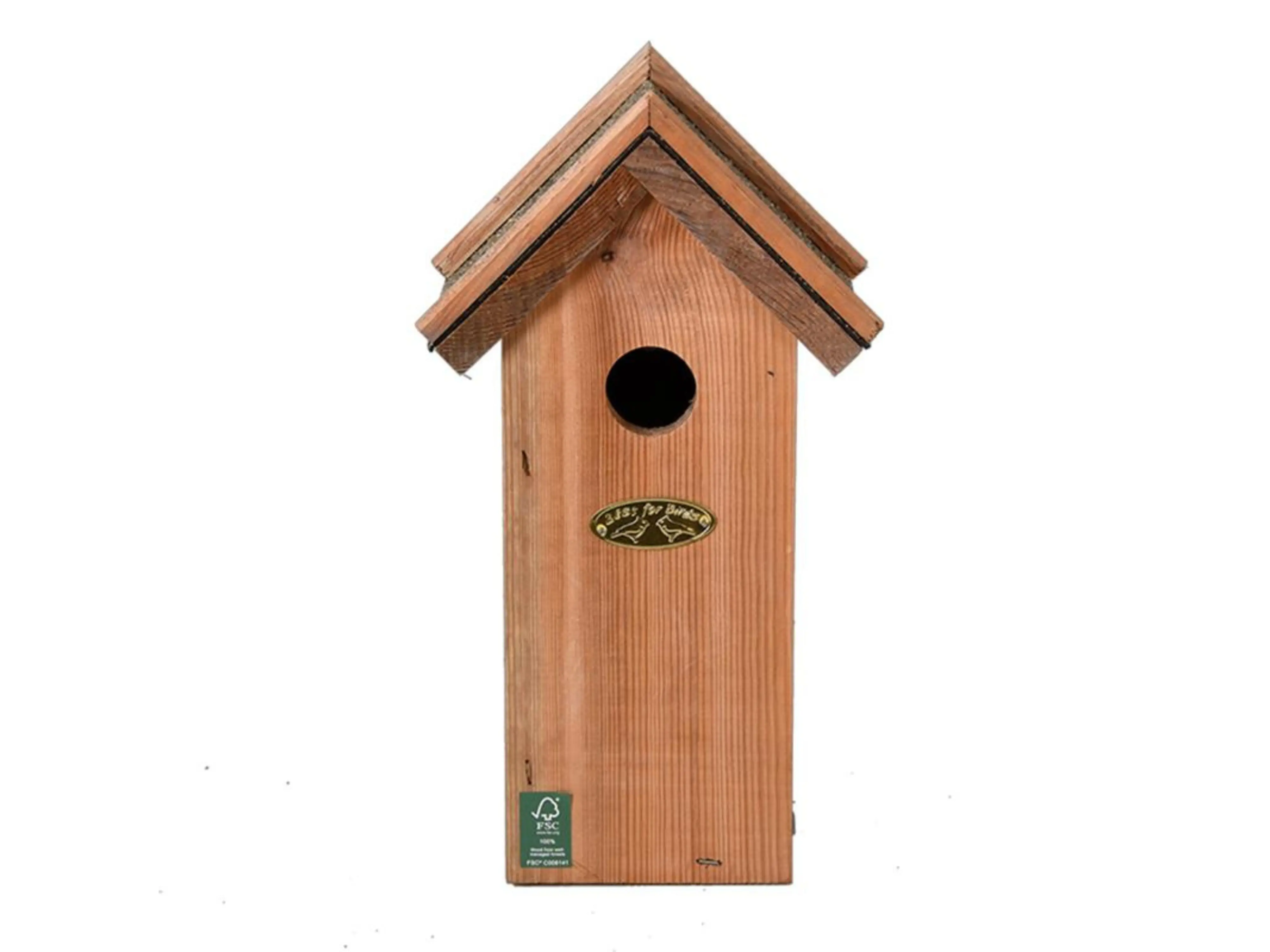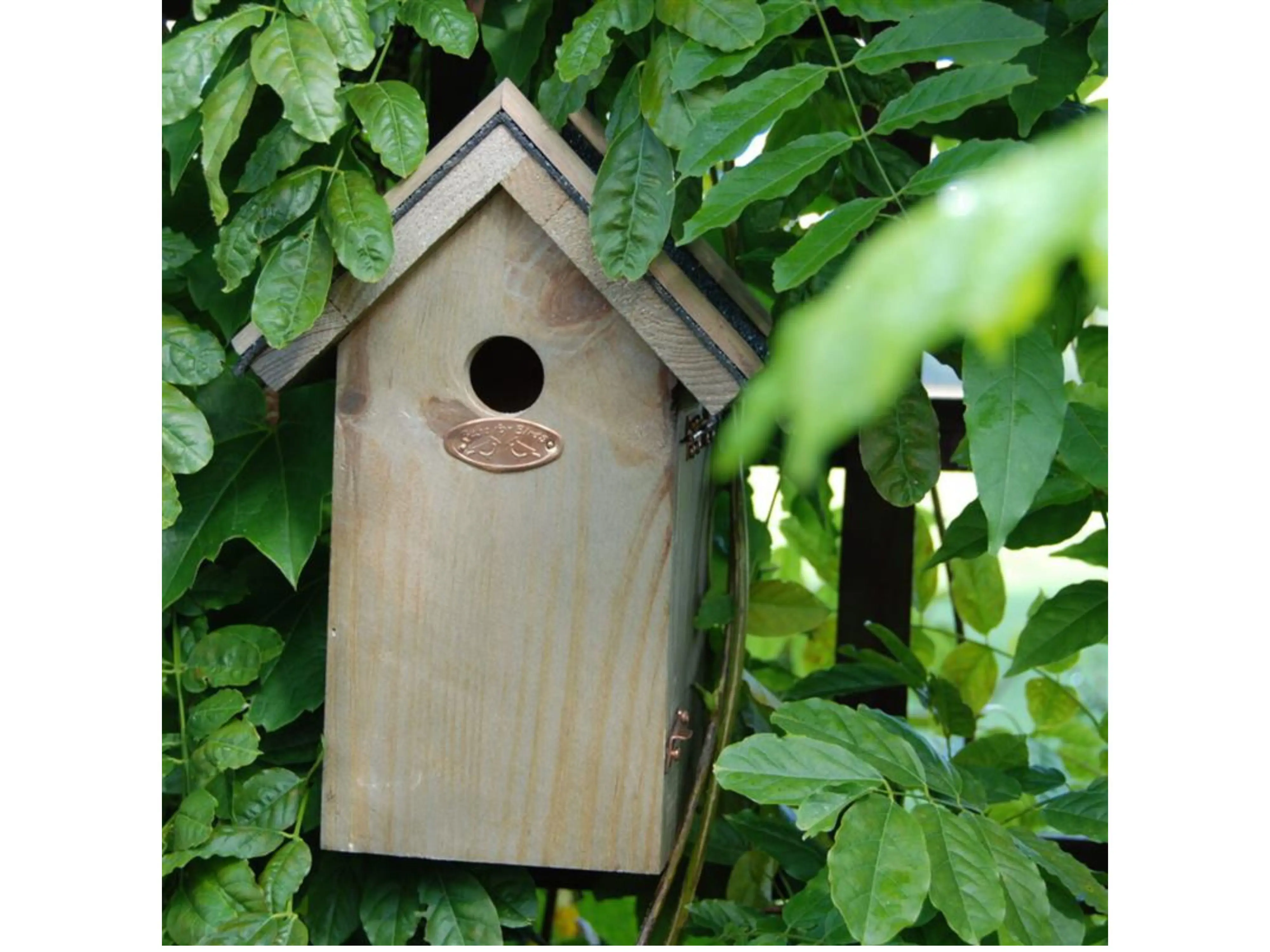 La boîte à nid possède une ouverture pratique pour un trou de serrure à l’arrière, ce qui permet de l’accrocher facilement dans un endroit calme et abrité – ni en plein soleil ni sous la pluie – avec une trajectoire de vol libre pour les oiseaux.