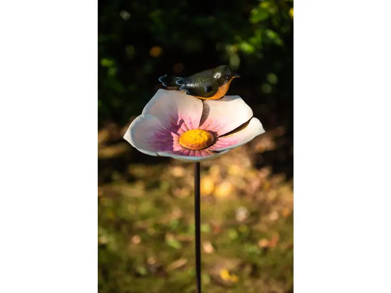 Apportez du charme à votre jardin avec ce bol de nourriture en forme de magnolia avec un oiseau décoratif. Grâce à la brochette, vous pouvez facilement placer la gamelle dans le sol, où elle forme un ajout naturel et élégant à votre espace extérieur.