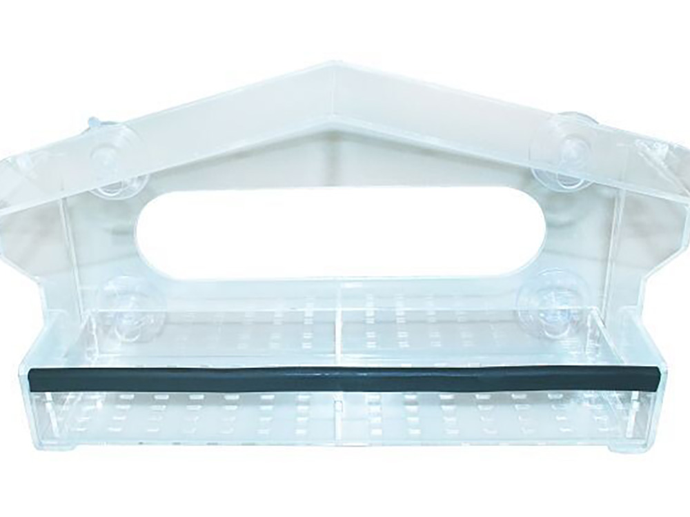 La maison est équipée de quatre ventouses puissantes et possède un fond perforé pour évacuer toute eau de pluie. Le plateau d’entrée amovible en deux parties possède un bord en caoutchouc sur lequel les oiseaux peuvent s’asseoir.