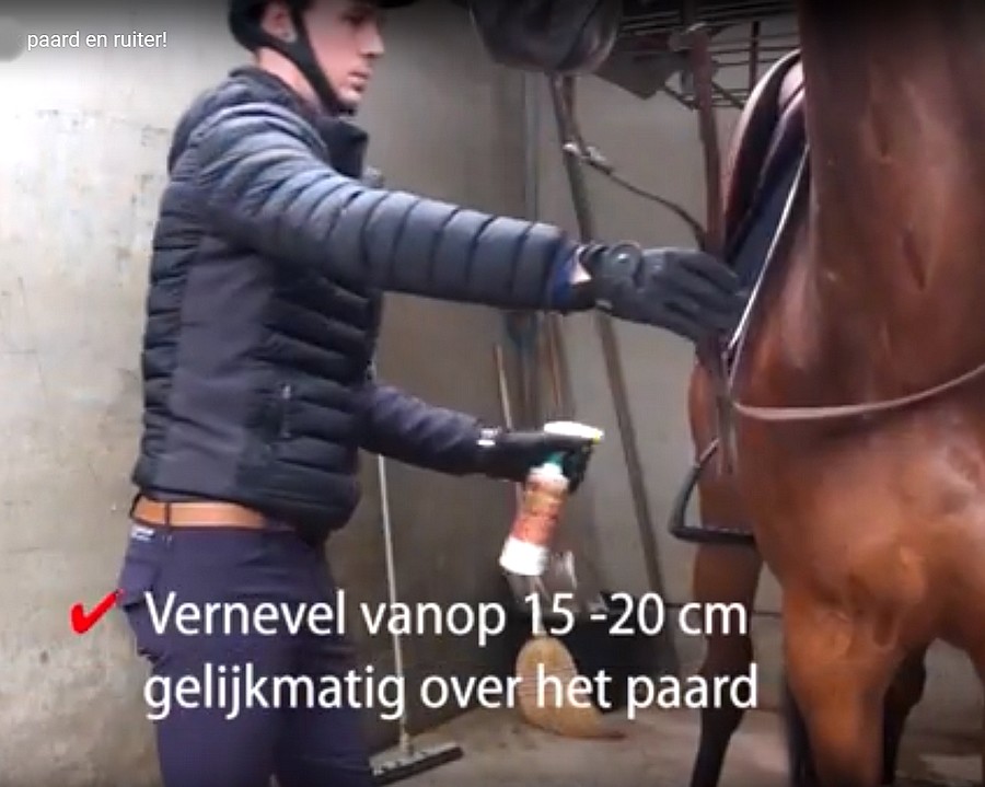 Le produit est à base d’icaridine, a une action rapide et protège les chevaux pendant 24 heures contre les insectes piquants et non piquants. Le produit a une odeur agréable, ne tache pas et n’adhère pas.