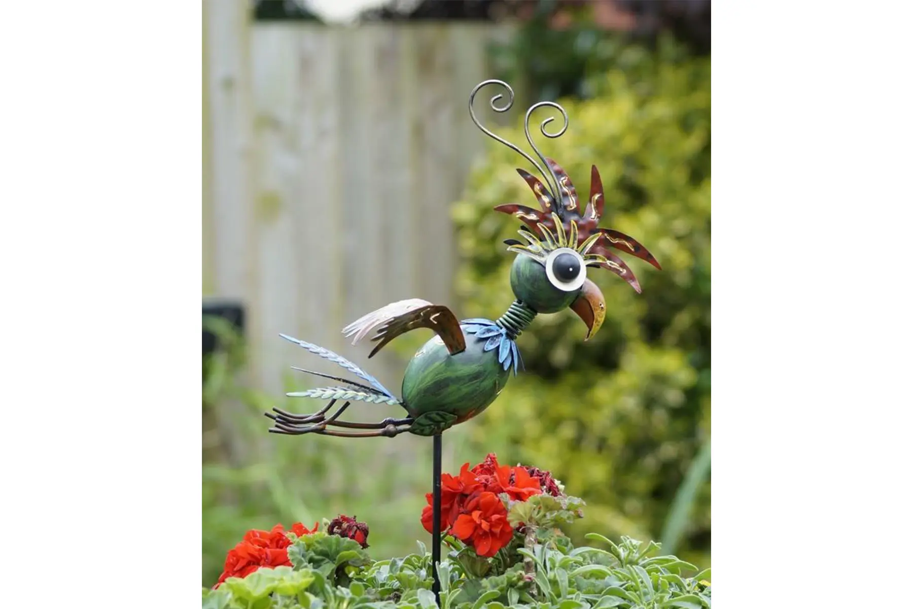 Le perroquet est pourvu d'un piquet grâce auquel vous pouvez l'utiliser comme décoration dans vos massifs de fleurs ou dans un bac à plantes.