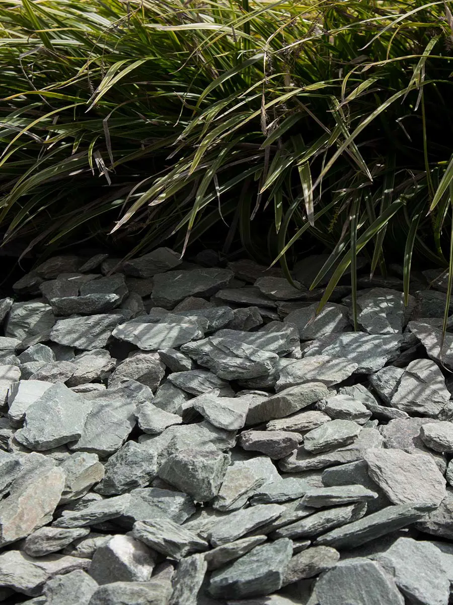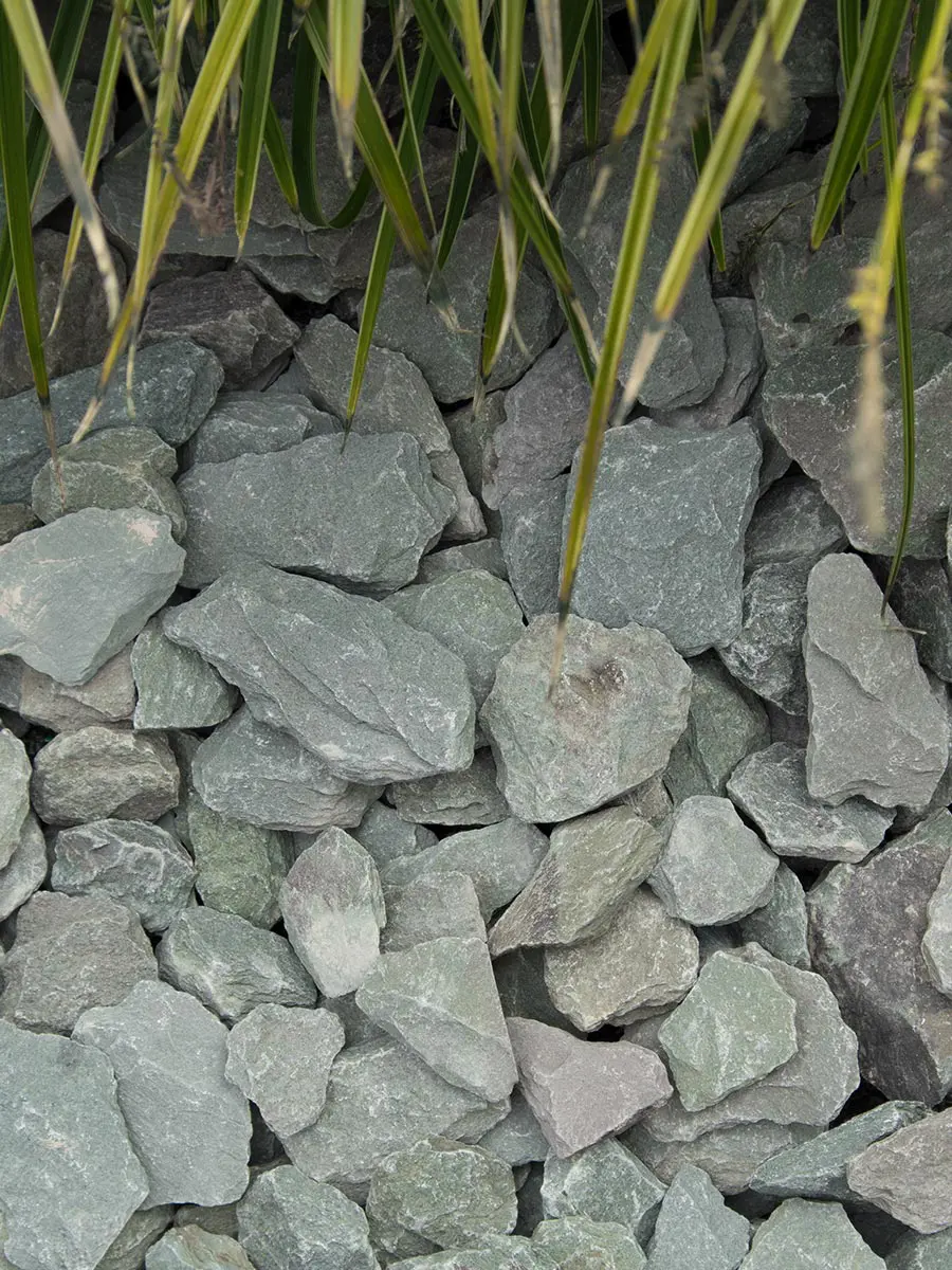 Ardoise verte gravier est une variété de pierre concassée unique en raison de sa couleur verte. Cela rend la pierre facile à combiner avec des plates-bandes et une pelouse. En raison de sa forme plate, ils sont également agréables pour marcher.