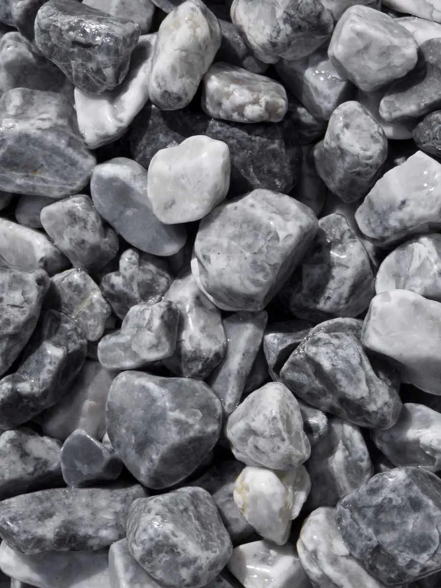 Êtes-vous à la recherche d'un beau gravier gris-bleu, au un look luxueux? Alors vous êtes au bon endroit avec le Ice Blue / Niagara galets de marbre. Le Ice Blue / Niagara galets de marbre, également connu sous le nom de Niagara blue ou Ice blue, est une belle pierre décorative ronde avec une structure en marbrée. Le gravier gris-bleu apporte une touche  élégante à tout jardin.