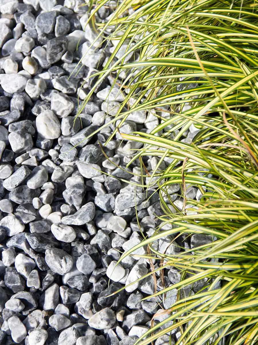 De plus, le gravier Icy Blue est très agréable pour marcher, grâce à sa forme (artificiellement) arrondie et est suffisamment dur pour être utilisé dans une allée ou une cour.
