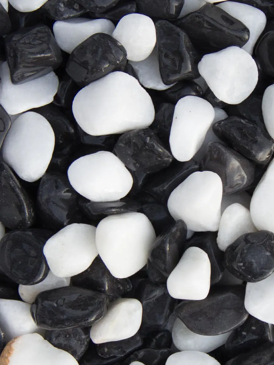 Panda galets est, grâce à sa combinaison de couleur blanche et gris foncé, une variété élégante de gravier décoratif. Panda galets est très contrasté en raison de ces deux couleurs différentes, mais reste apaisant dans le jardin, grâce à sa forme ronde.