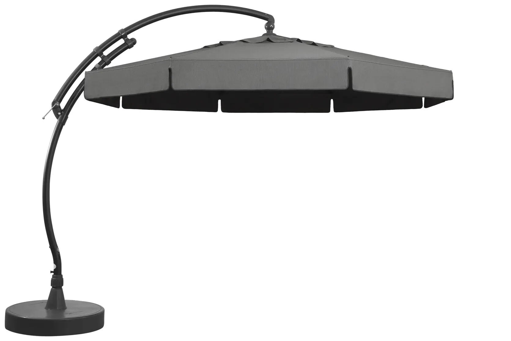 Le tissu en oléfine taupe est doté d'une aération pour réduire la prise au vent. Un système de freinage unique évite les chocs sur la toile ou le mât lorsque le parasol est ouvert. Les ourlets sont dotés de doubles coutures et chaque rayon est équipé d'un piston à ressort pour offrir une protection supplémentaire à votre parasol. La base en résine de couleur anthracite peut être remplie d'eau , de sable , de gravier ou de clinkers jusqu'à 150 kg.