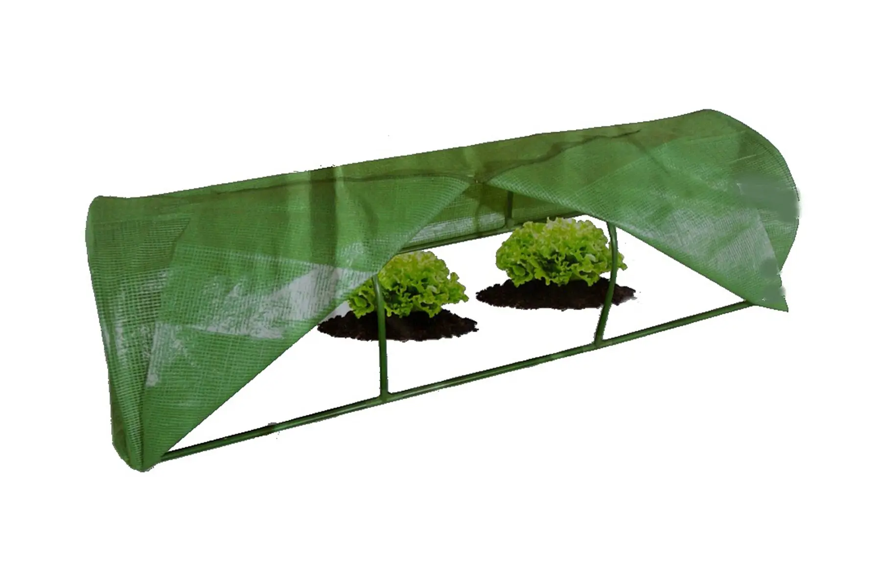 Tunnel de culture avec feuille d’aluminium et quatre arches pour la culture de diverses cultures telles que choux-fleurs, épinards, carottes, radis, laitues, herbes aromatiques,... Grâce au cadre métallique, le tunnel de culture est facile à déplacer.
