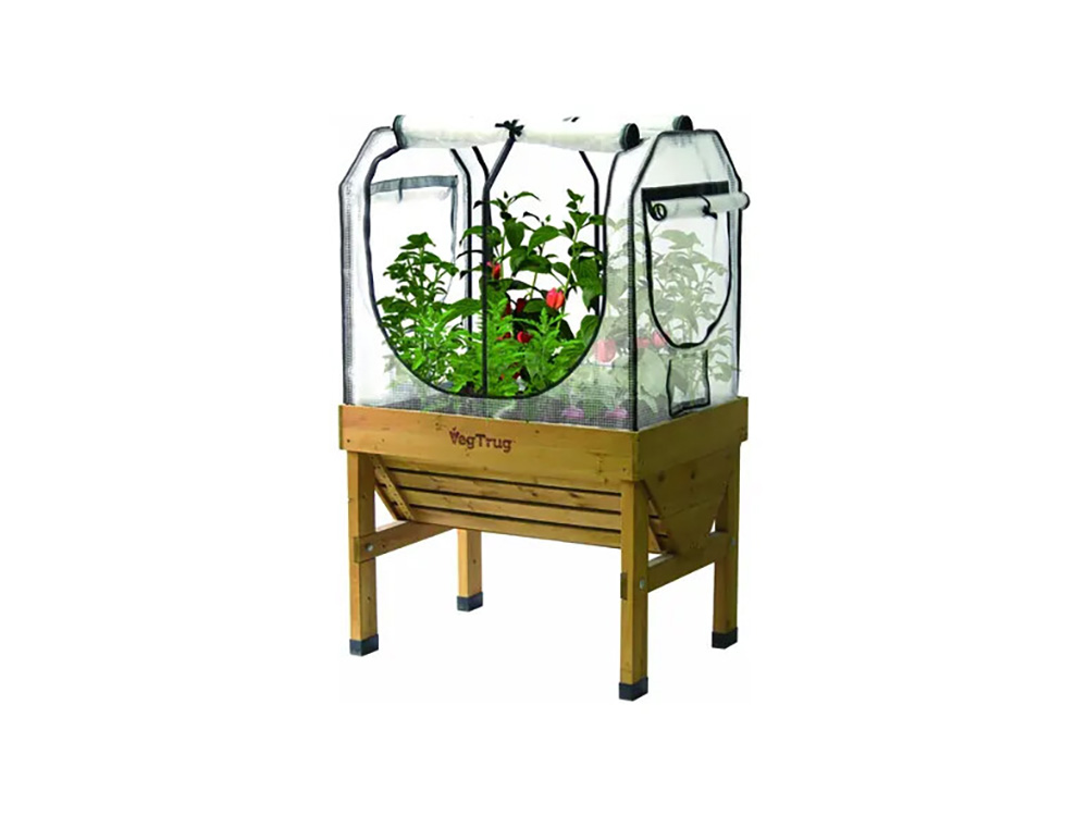 Cette serre montée en surface de Vegtrug s’intègre parfaitement à votre table de culture Vegtrug. Au-dessus du cadre robuste se trouve un couvercle renforcé en PE avec deux vitres latérales et un enroulement avant et arrière. Cette version améliorée est plus élevée, ce qui est utile pour cultiver des cultures plus élevées comme les tomates.