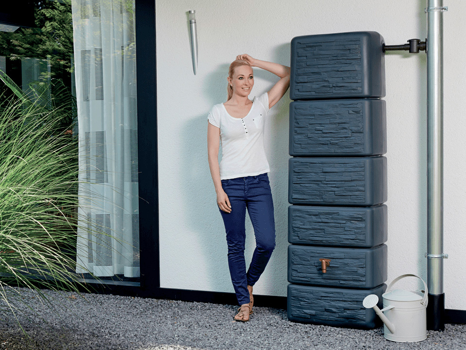 Cette variante du baril de pluie Slim Wall modèle 300 L possède la couleur granite.