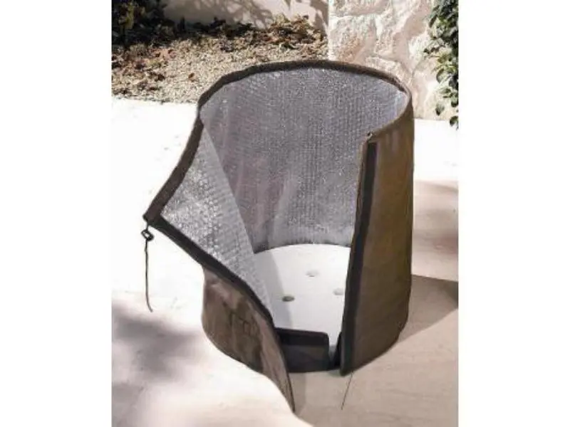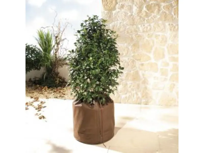 Rapide et facile à utiliser. Le pot peut facilement être placé dans le sac via une fermeture Velcro et, à l’aide d’un cordon, le sac se referme fermement et proprement autour de la base de la plante. Au fond du sac se trouve une plaque isolante de 4 cm d’épaisseur avec des trous de drainage pour l’évacuation de l’excès d’eau.