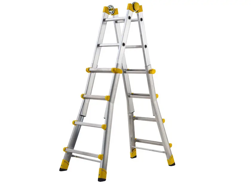L’échelle peut être utilisée à la fois comme échelle simple et en position A , ce qui vous permet de l’utiliser pour différents travaux. Le design unique permet de glisser séparément les parties extrêmes de l’échelle vers l’intérieur et l’extérieur, afin de déterminer la longueur souhaitée.