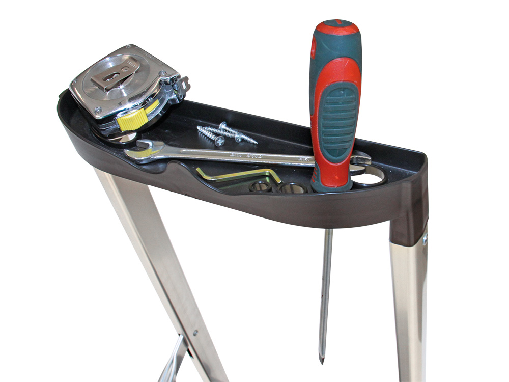 Pour maintenir une bonne prise sur les marches aussi longtemps que possible, les profils sont traités avec une couche anti-saleté . Cela vous permet de travailler en toute sécurité et confiance, même par temps humide. L’échelle est également équipée d’un porte-outils pratique situé en haut de l’échelle. De cette façon, vous avez toujours les outils nécessaires à portée de main.