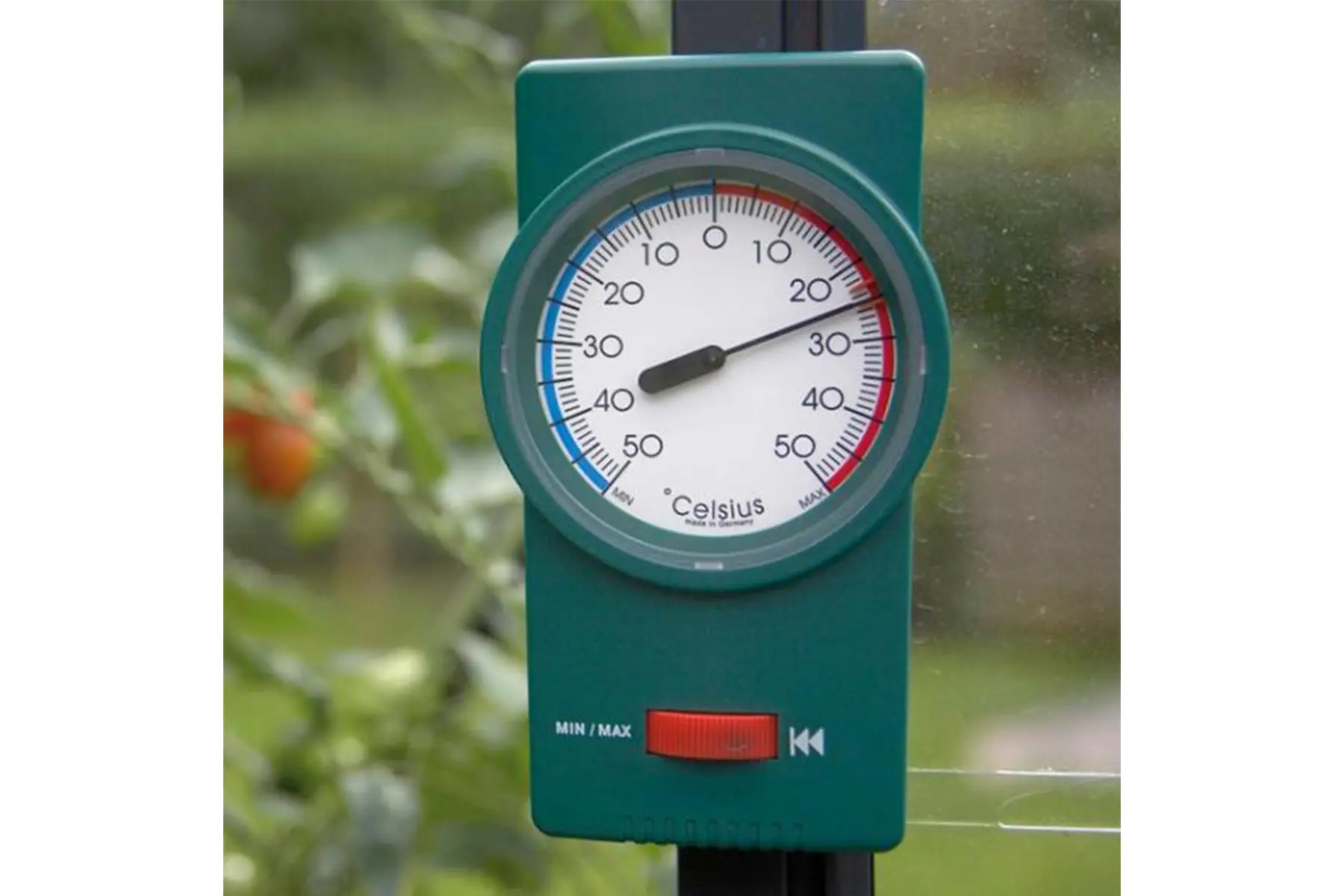 Ce thermomètre minimal-maximum vous indique quelle a été la température minimale en °C sur une période donnée, ainsi que la température maximale. Ainsi, vous saurez s’il n’a pas fait trop froid dans votre serre la nuit dernière. C’est aussi intéressant de simplement traîner dehors dans le jardin.