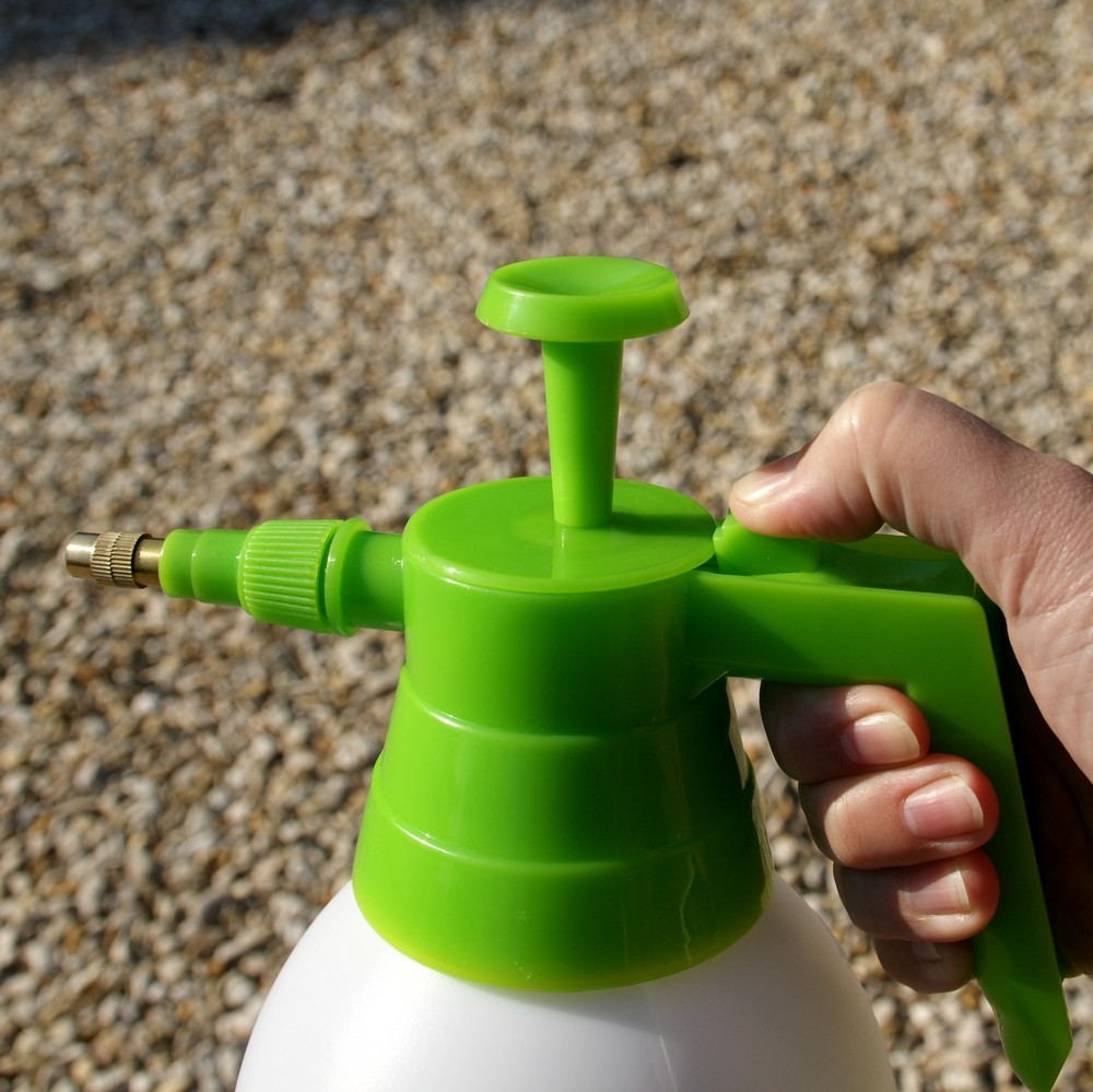 Ce système simple se compose d'un réservoir blanc de 2000 ml avec indications de mesure par 500 ml. Le système de pulvérisation avec pompe à pression est vert et se dévisse facilement du réservoir.