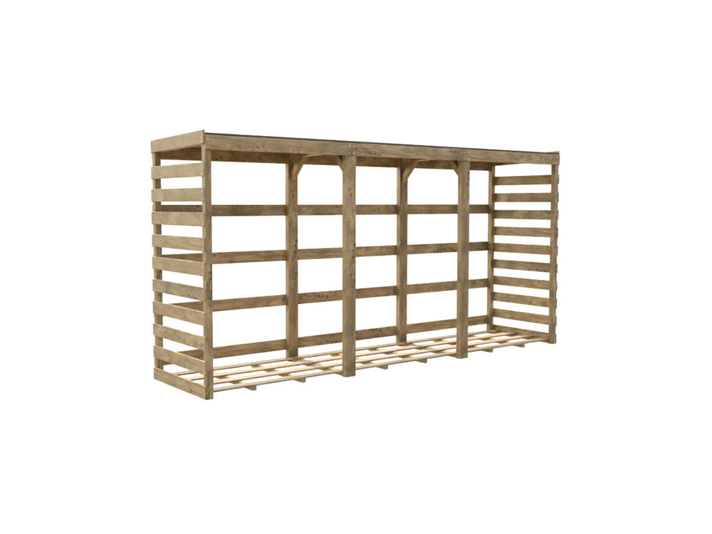 Le hangar à bois de Columbus est conçu pour stocker plusieurs mètres cubes de rondins, protégés des éléments. Le stockage du bois de style forestier est fabriqué à partir de pin norvégien imprégné issu de forêts gérées de manière durable. Cet espace de stockage permet l’organisation efficace de journaux de différentes tailles.