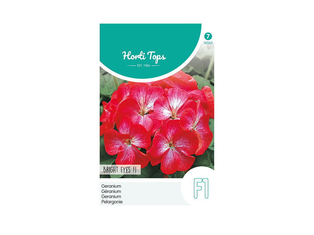 Geranium Bright Eyes F1, le pélargonium mieux connu sous le nom de géranium. C’est l’une des plantes de jardinier les plus populaires depuis de nombreuses années ! Ce mélange de graines se compose d’une magnifique variété fuchsia au cœur plus pâle, idéale pour la plantation en pots, bols et litières.