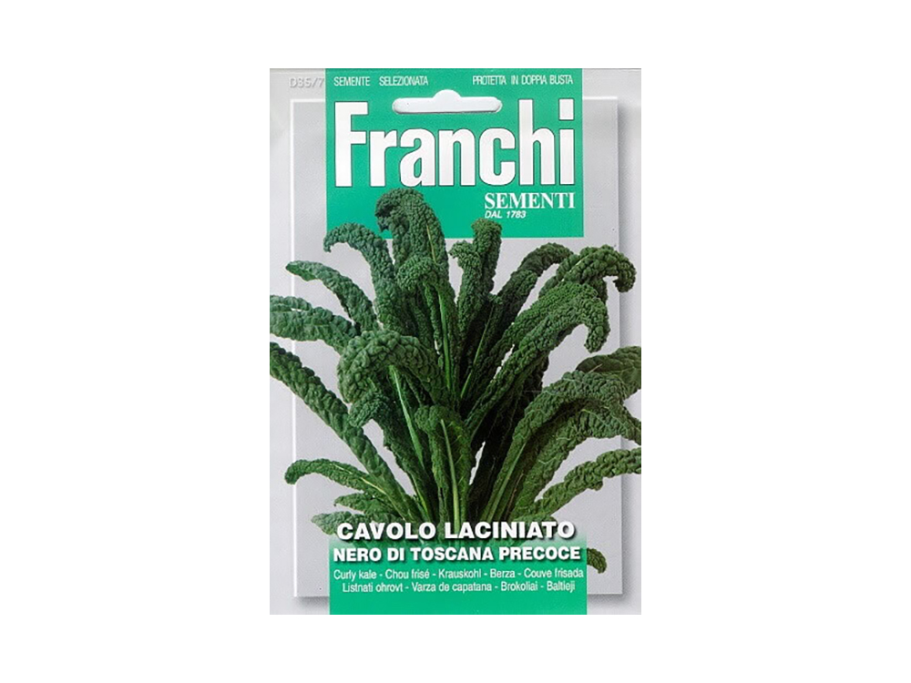Le Cavolo Nero est le seul chou kale cultivé en Italie et il est particulièrement populaire en Toscane. Il a un feuillage ridé, vert foncé (presque noir) avec un goût sucré délicieux qui devient encore meilleur après le gel.