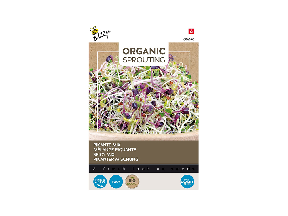 Le mélange épicé Bio peut être cultivé toute l’année sous forme de légume à germes dans un pot à germe. C’est un mélange de daikon rouge (radis japonais), roquette, brocoli et fenugrec. Les pousses ont un goût riche et épicé, elles sont riches en vitamines et minéraux et constituent donc un ajout précieux à de nombreux plats.