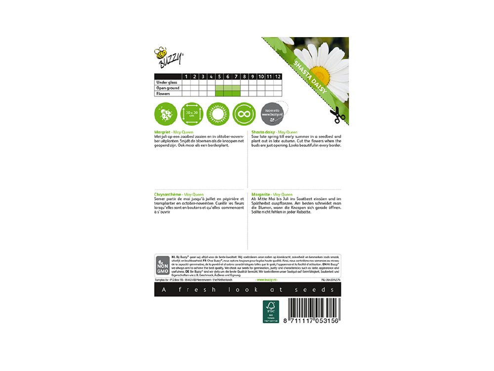 Margriet May Queen atteint une hauteur de 75 cm et fleurit avec de grandes fleurs blanches pures au centre jaune vif. Le pollen floral grossit chaque année et peut être divisé après quelques années. C’est ce qu’on appelle le craquement. C’est une magnifique plante bordante et un endroit légèrement ombragé ne pose pas de problème non plus.