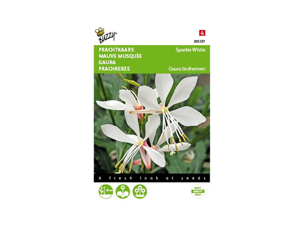 Le Gaura Sparkle White est une plante vivace et aérienne qui atteint environ 80 cm de hauteur. Un magnifique fleur d’été avec de magnifiques fleurs blanches. Ils attirent aussi beaucoup d’abeilles dans le jardin. La plante préfère un endroit ensoleillé et s’accorde bien avec les graminées ornementales.