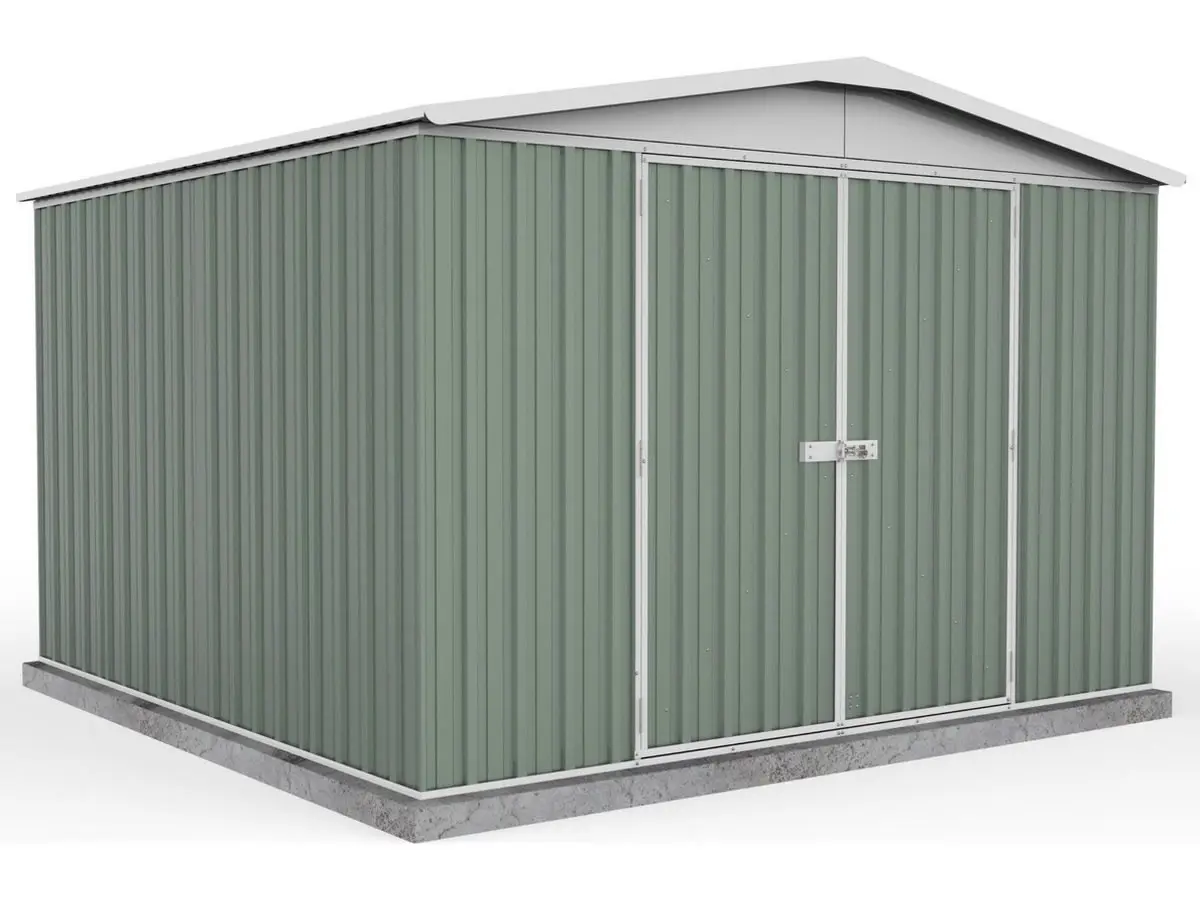 Cette variante de l’abri de jardin Absco Regent 30292RK - 8,76 m² est de couleur verte .
