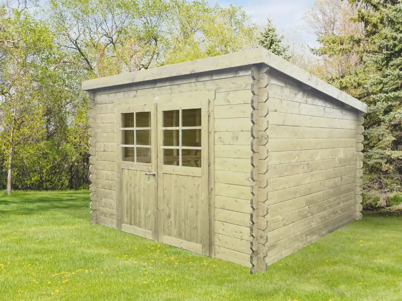 Le système traditionnel de construction de cabane en rondins où des profils en bois à rainure et languette sont superposés les uns sur les autres. Équipée d’un toit avec des planches de bois de 16 mm et d’une toiture noire. Verre trempé transparent. Serrure avec protection pour enfants. Système de ventilation.