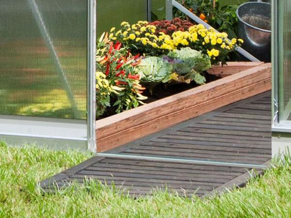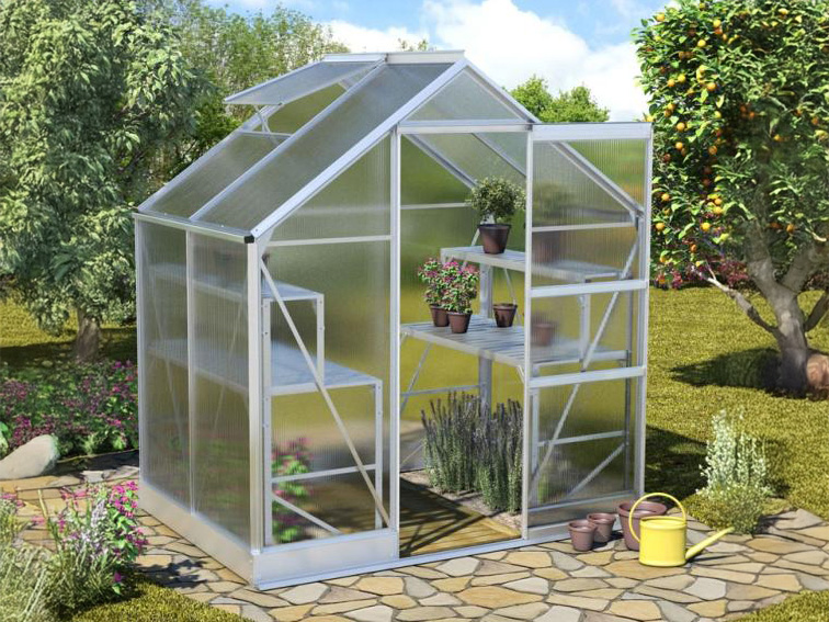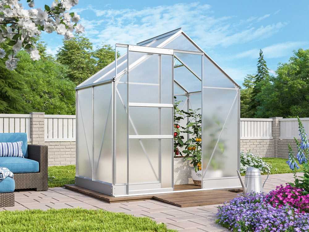 Le cadre est fabriqué en aluminium anodisé durable afin que la serre ait l’air neuve pour les années à venir. La serre est fournie de série avec des feuilles de polycarbonate de 4 mm. Ces panneaux à double paroi sont légers, presque incassables et offrent une excellente isolation ! En option, vous pouvez opter pour du polycarbonate de 6 mm.