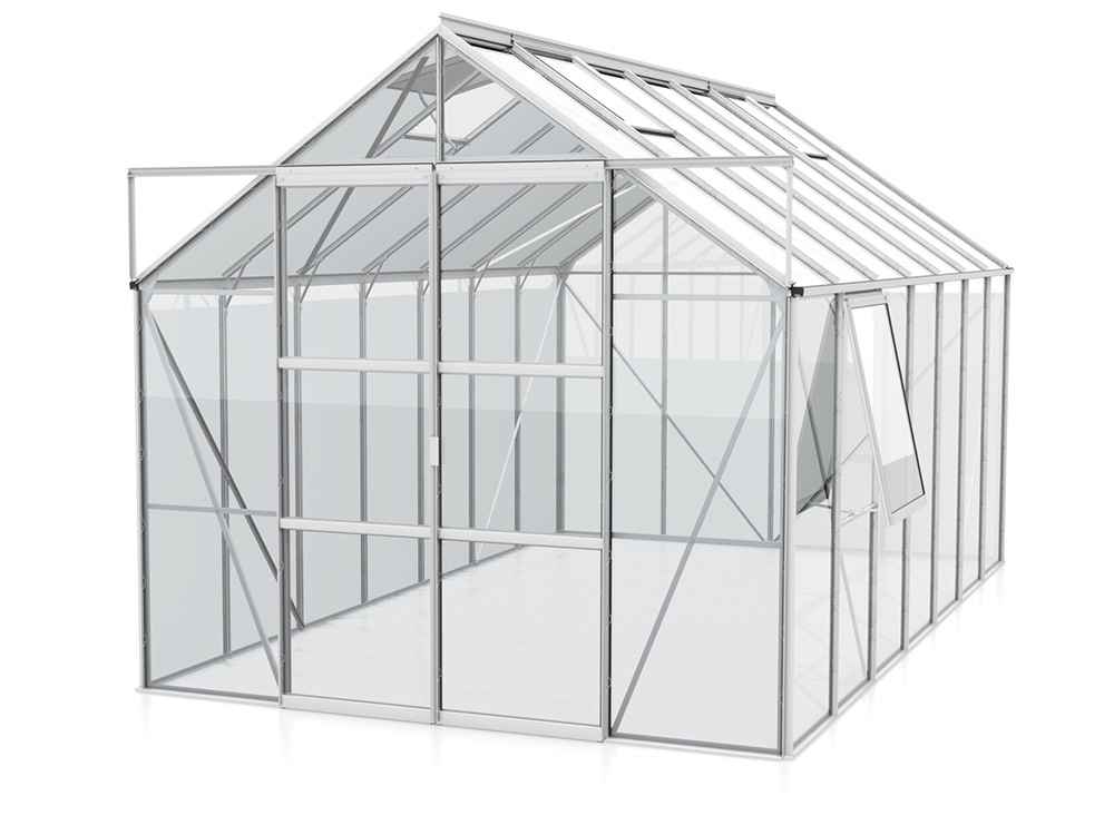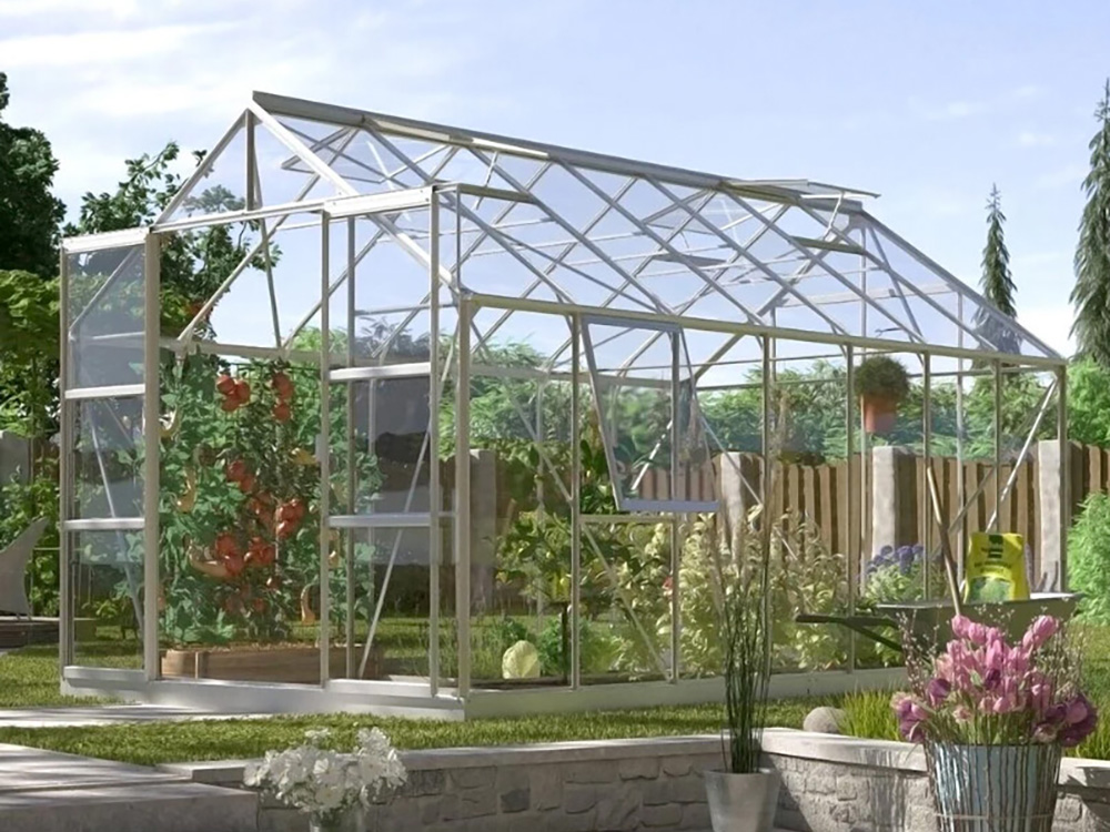 Avec une hauteur généreuse de 248 cm et une largeur de 257 cm, le Jupiter offre largement assez d’espace. La hauteur du bord du toit de 154 cm offre une hauteur supplémentaire pour la tête et une facilité de travail. Une résistance supplémentaire est obtenue grâce à des plaques d’angle et des renforts dans toute la serre, afin que vous puissiez exercer plus de tension sans souci.