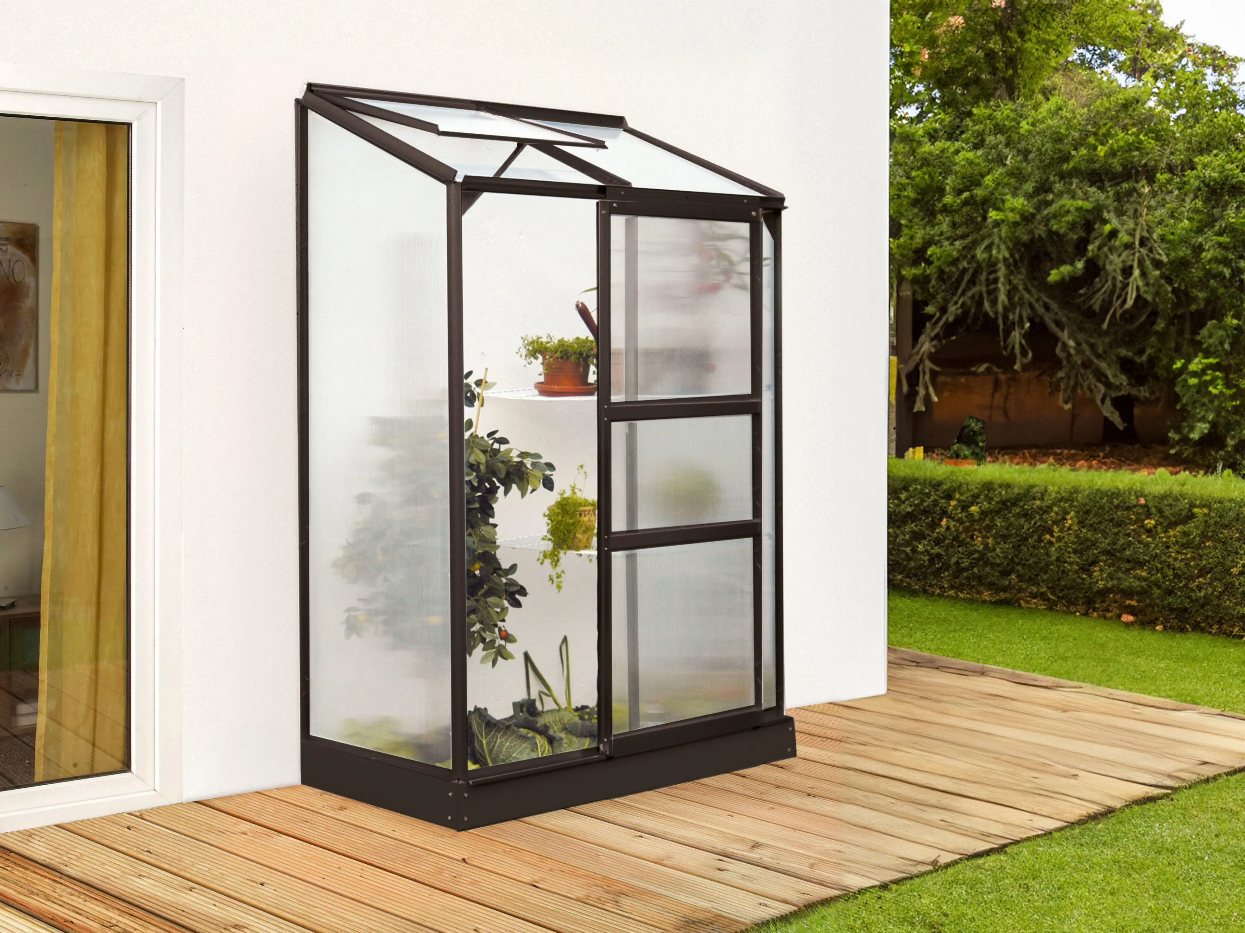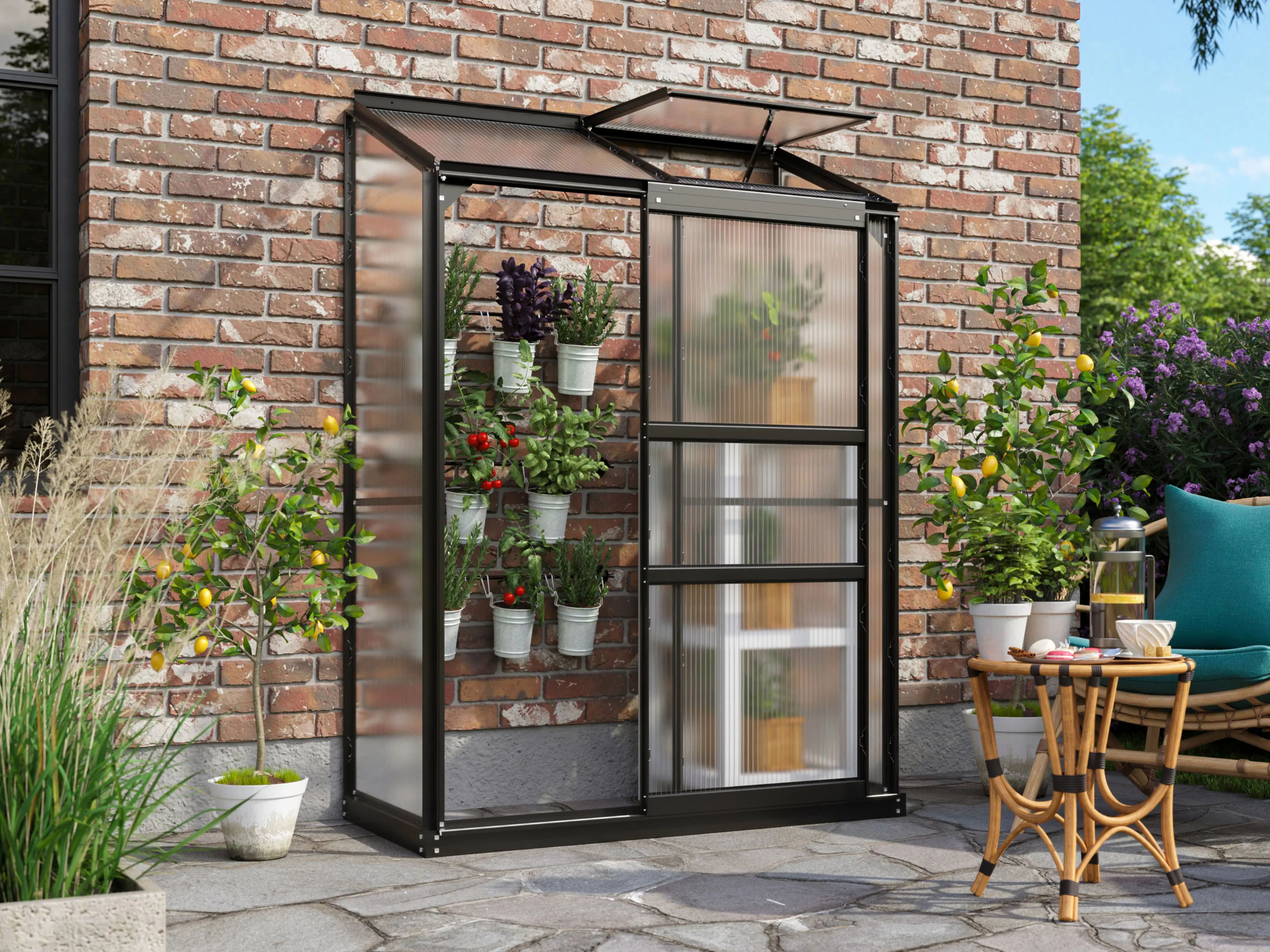 La serre murale Ida est la solution idéale pour les jardiniers disposant d’un espace limité. Conçu pour être utilisé sur balcons, terrasses ou jardins clos, ce modèle est idéal pour les semis et les boutures ainsi que pour la culture de poivrons et de tomates. La haute faîte et la porte coulissante fluide assurent un accès facile. La puits de lumière assure une bonne ventilation en permanence.