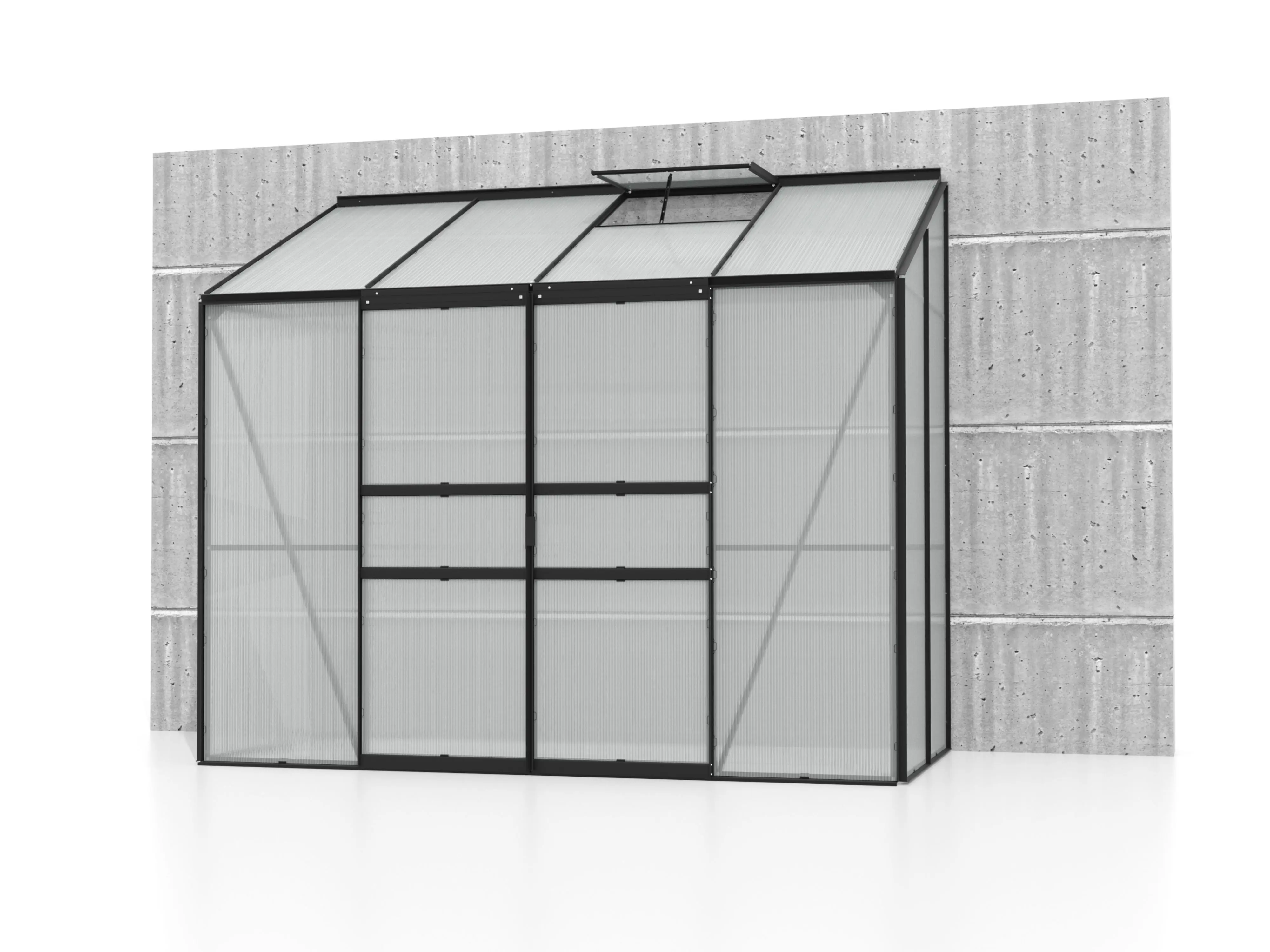 La haute faîte et la porte simple ou double coulissante facilitent l’accès à la serre, tandis qu’une ou deux puits de lumière (selon la taille) assurent un espace bien ventilé. Les profils robustes en aluminium revêtu en poudre restent beaux et faciles à entretenir pendant des années.