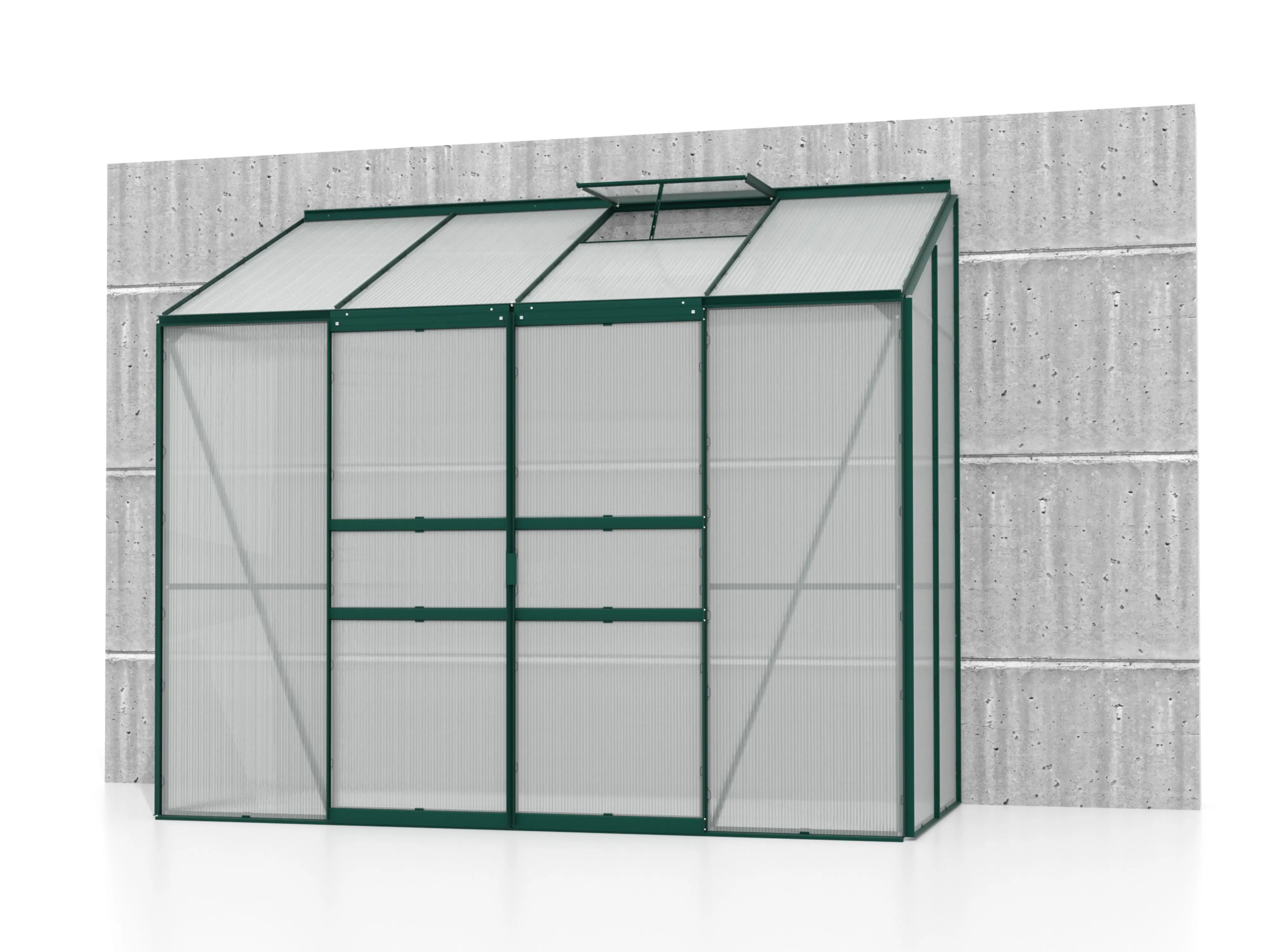 La haute faîte et la porte simple ou double coulissante facilitent l’accès à la serre, tandis qu’une ou deux puits de lumière (selon la taille) assurent un espace bien ventilé. Les profils robustes en aluminium revêtu en poudre restent beaux et faciles à entretenir pendant des années.
