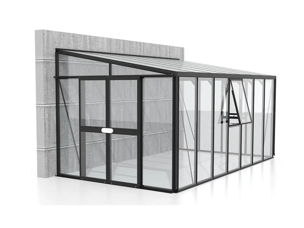 Cette luxueuse serre murale noire de Vitavia est idéale pour la culture de légumes et de fruits, mais elle sert aussi souvent de salon supplémentaire attrayant pour se détendre. Le design de haute qualité présente des profils uniques à double châssis, offrant une résistance et une stabilité supplémentaires.