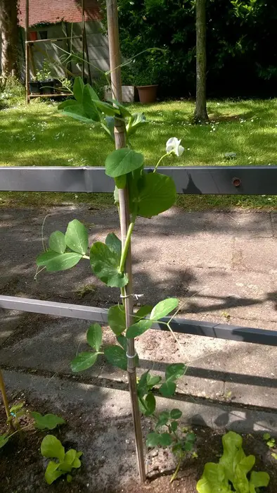 Le pois est une plante annuelle aux tiges herbacées fines et creuses qui, selon l’espèce, peuvent atteindre une hauteur de 25 cm à 200 cm.