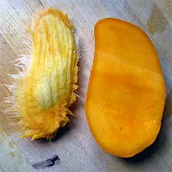 Après l’épluchement, vous pouvez manger la chair jaune, qui a un goût sucré, juteux et possède une odeur sucrée typique.