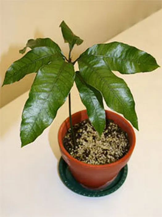 Mangifera indica possède un sommet large et dense avec des feuilles lisses et brillantes.