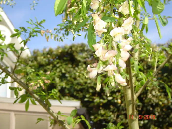 Après la floraison, des gousses apparaissent sur l’arbre.
