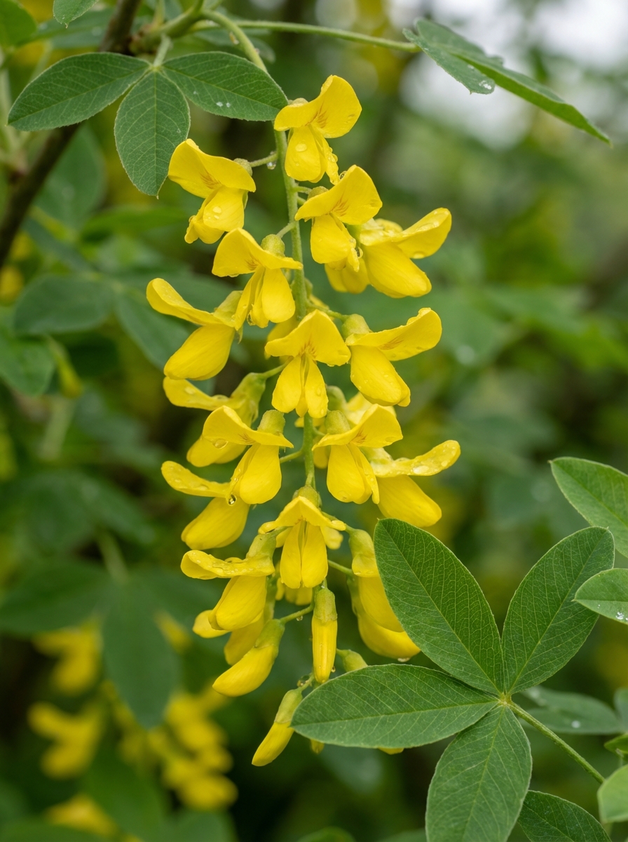 Laburnum anagyroides est un arbuste à croissance lente/arbre à tiges multiples originaire d’Europe centrale et méridionale. Elle forme une somme étroite en forme de vase avec des feuilles vertes doucement poilues.