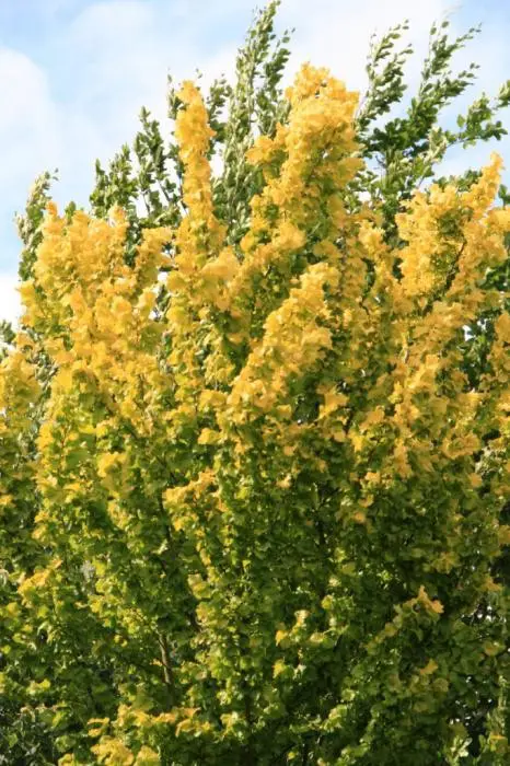 Les feuilles sont d’abord jaune doré à jaune-vert en été, puis jaunes à nouveau en automne.