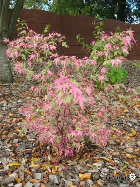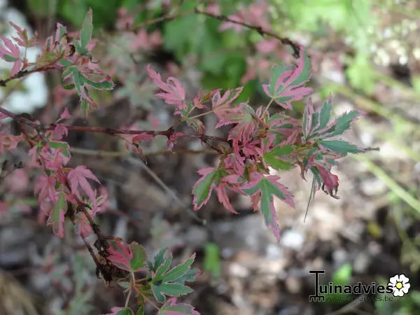 Acer palmatum 'Taylor' est un érable japonais à croissance lente et large, avec un habit droit et large, une cime dense et des branches pendantes.