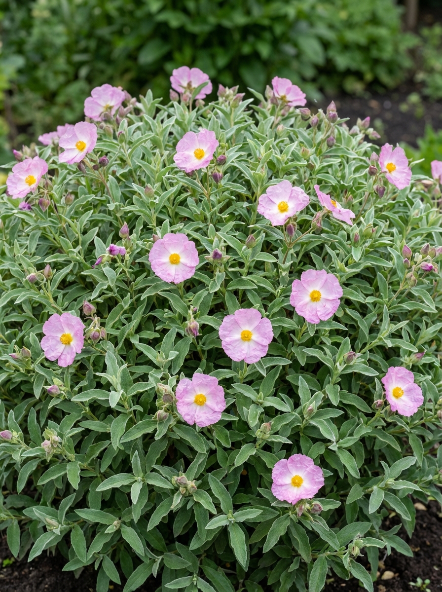 c’est un arbuste à fleurs abondantes avec des feuilles allongées gris-vert.