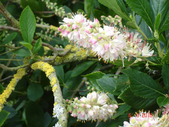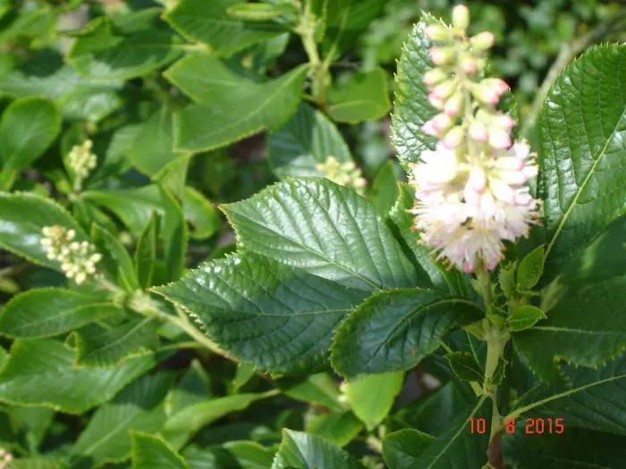Clethra alnifolia 'Pink Spire' est une version améliorée de 'Rosea', avec des fleurs parfumées de couleur saumon à rose, semblables à des plumes. Plus tard, les fleurs deviennent plus blanches.
