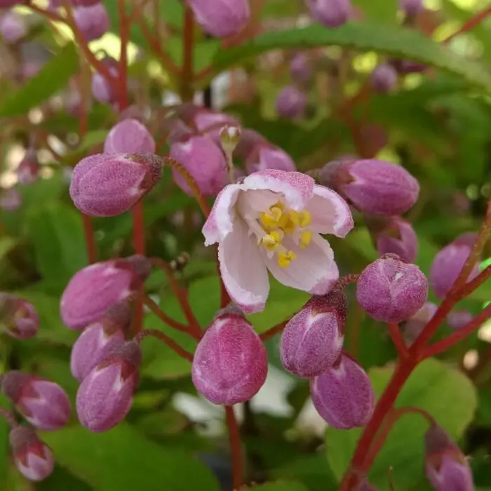 Deutzia x rosea 'Yuki Cherry Blossom' est un arbuste nain à croissance basse, compact, touffue, avec une floraison abondante.