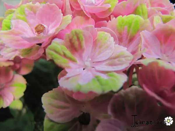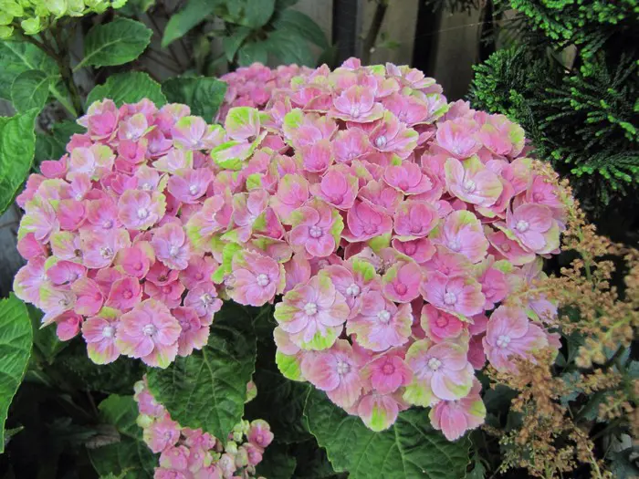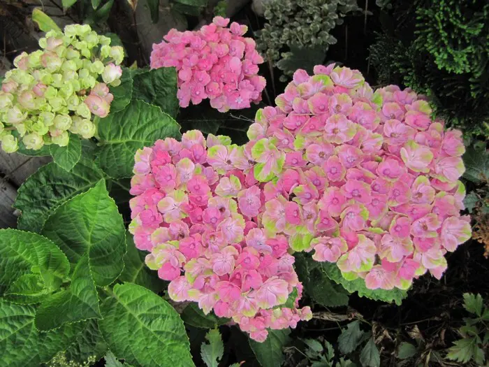 La couleur des fleurs varie au fil des saisons, allant du rose pâle au rose profond, puis passe du vert-rose au vert en automne.