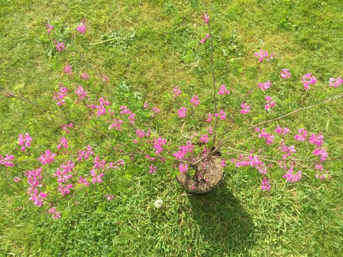 Fleurs abondantes avec des épines dressées de lilas éclatants semblables à des pois. Les fleurs individuelles commencent d’abord à s’ouvrir en bas.