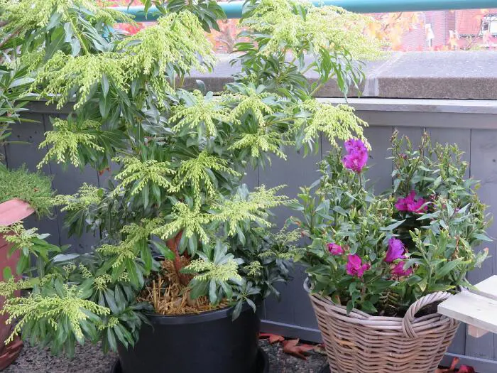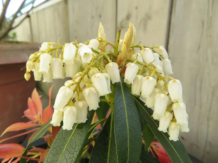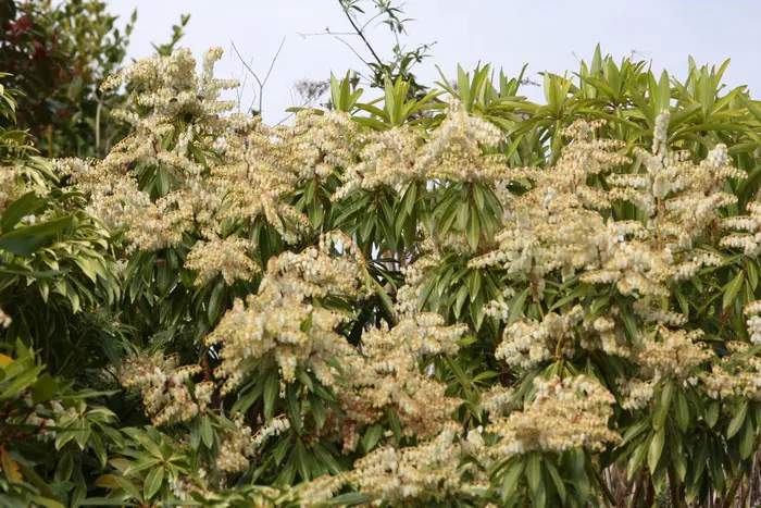 Fleurs abondantes avec des grappes de fleurs blanches en forme d’urne.